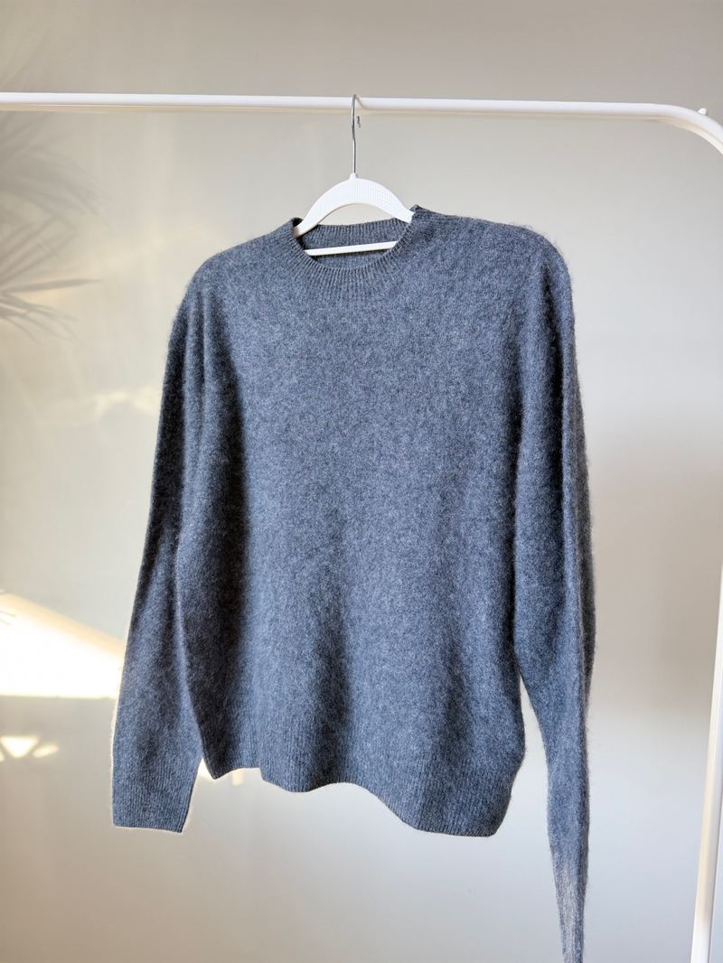 A soft, lightweight sweater with a gently fluffy texture — warm, breathable, and never itchy. Designed as an easy one-size piece that styles beautifully with denim, trousers, or skirts.